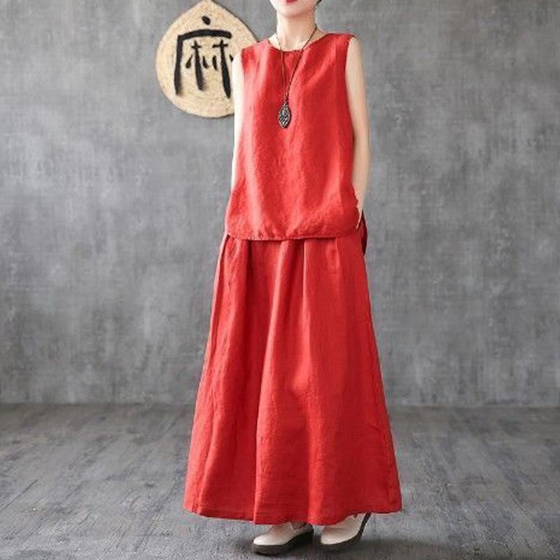 Bawełniana Lniana Luźna Spódnica Dwuczęściowy Zestaw