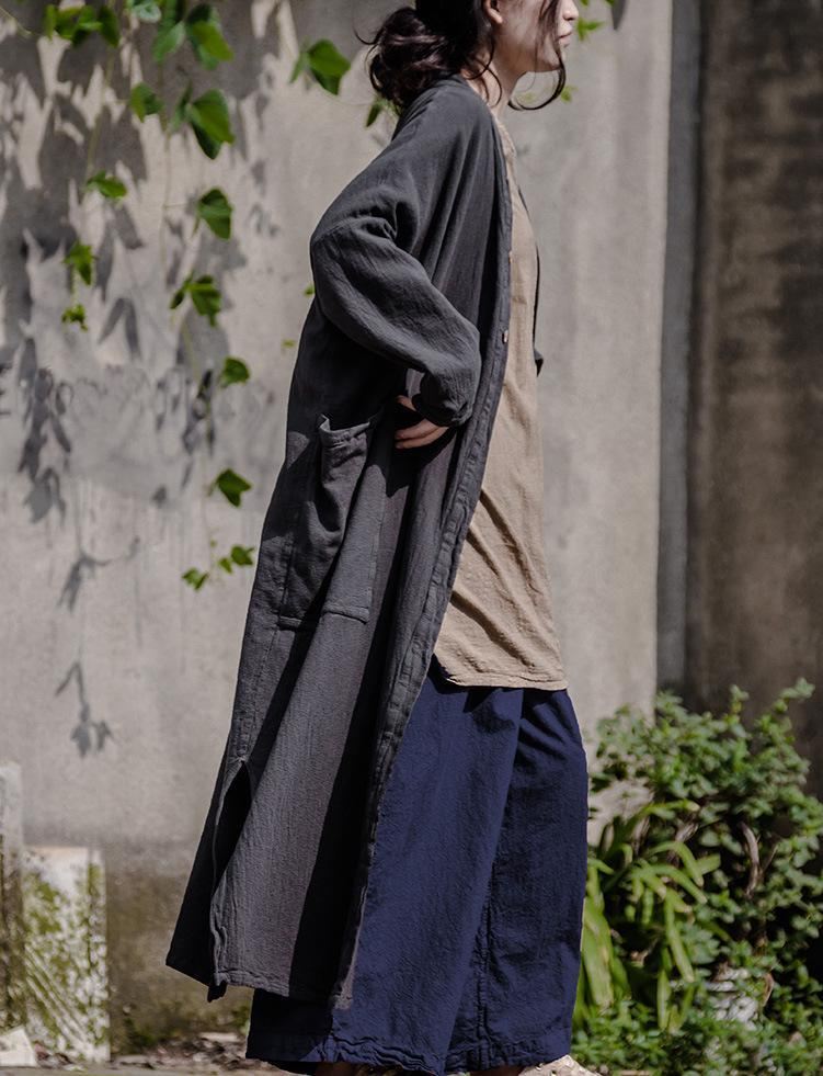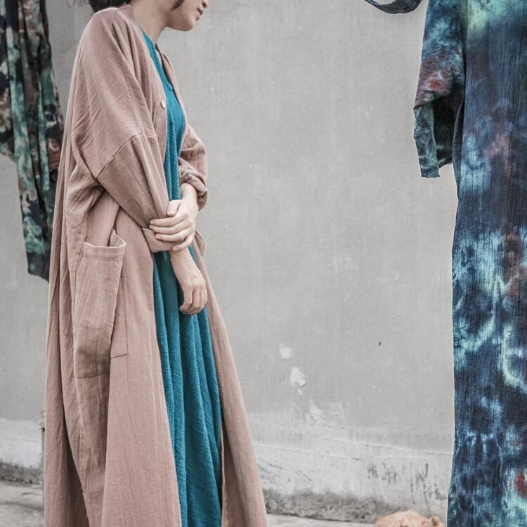 Bawełniany I Lniany Luźny Kardigan Damski Dziki Długi Płaszcz
