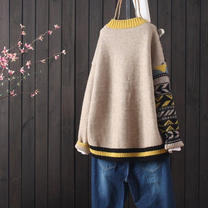 Blok Kolorów Dekolt W Serek Luźny Sweter Rozpinany Płaszcz