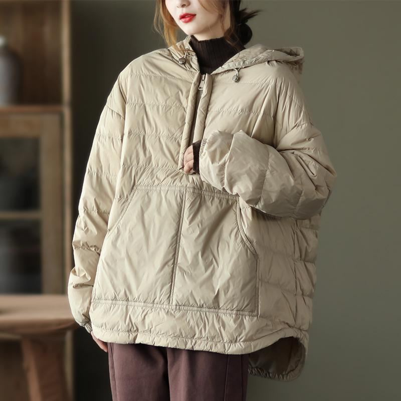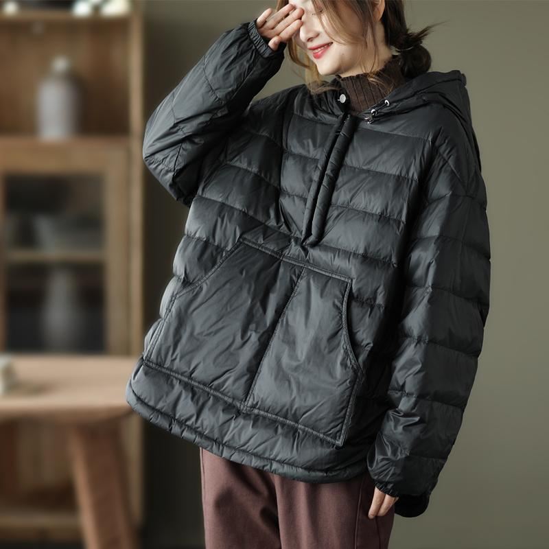 Zimowa bluza z kapturem i sznurkiem, lekka biała puchowa kurtka puchowa z długimi rękawami, górna część kurtki. Ten top ma luźny fason i 90% białego puchu kaczego jako wypełnienie. Dostępne są 3 kolory. Konsystencja jest miękka i lekka. Dekolt posiada zamek, który jest wygodny w noszeniu. Rąbek i czapka ubrania posiadają ściągacze, dzięki czemu nie musisz obawiać się wietrznej pogody. Po obu stronach ubrania znajdują się kieszenie, które są bardzo odpowiednie na jesień i zimę. Możesz dopasować pół spódniczki, spodnie casual i dżinsy.