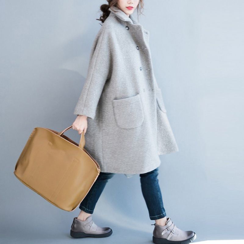Casual Luźny Zimowy Prosty Wełniany Płaszcz