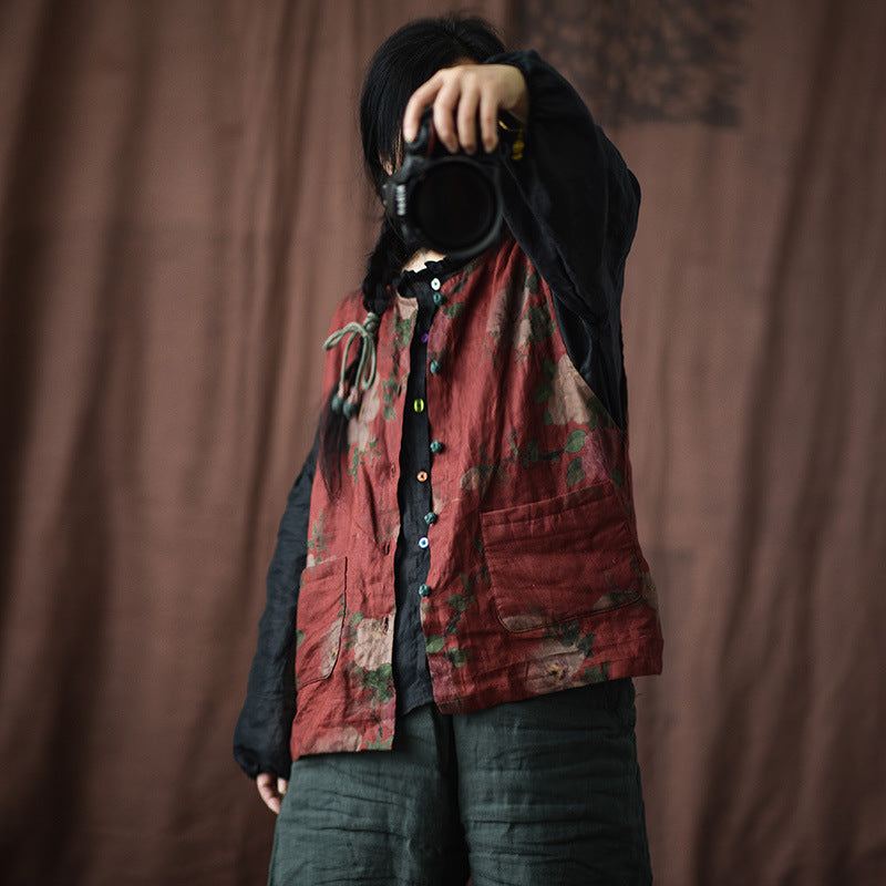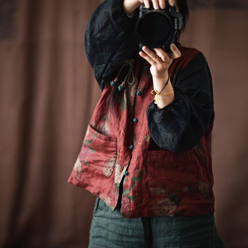 Damska Kamizelka Jednorzędowa W Stylu Retro W Kwiaty