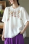Damska Koszulka Lniana W Stylu Retro Z Kwiatowym Haftem