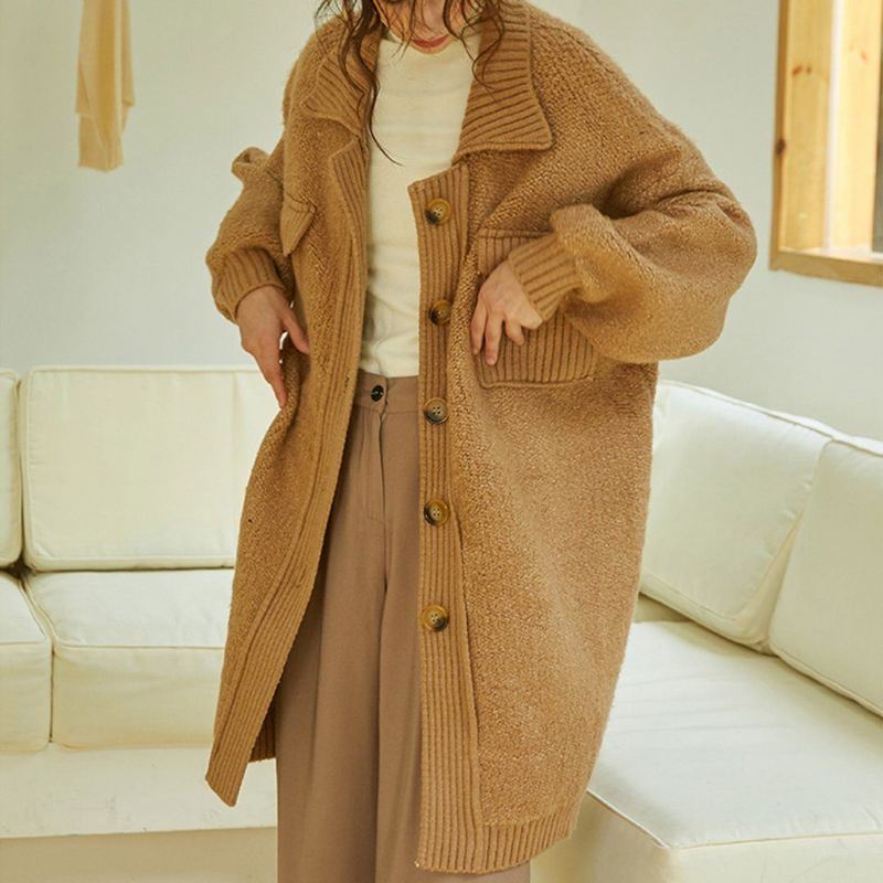 Damski Leniwy Płaszcz Z Dzianiny Z Polaru