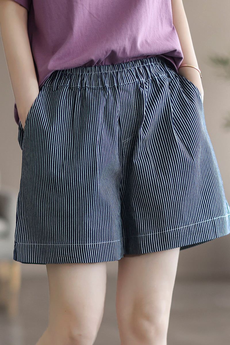 Damskie Letnie Luźne Bawełniane Spodenki Dżinsowe W Paski