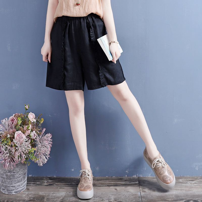 Damskie Letnie Luźne Spodenki Bawełniane Wzburzyć Lniane