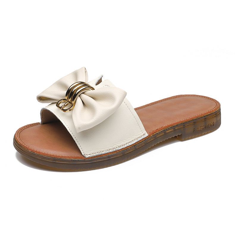 Damskie Letnie Modne Skórzane Kapcie Z Kokardą