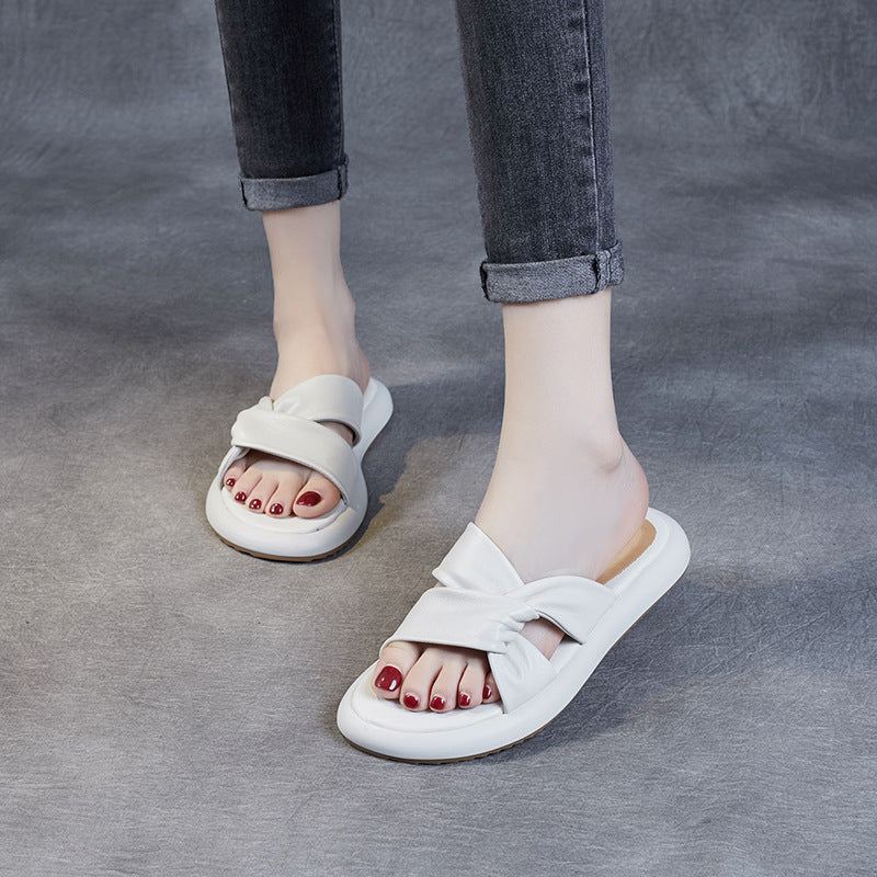 Damskie Letnie Retro Cross-skórzane Kapcie Na Co Dzień
