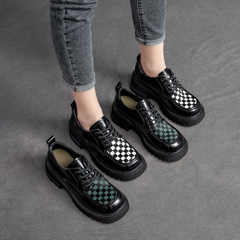 Damskie Mokasyny W Kolorze Wiosennej Skóry W Kratę