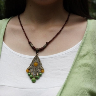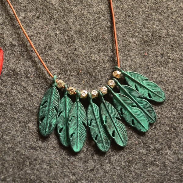 Etniczny Naszyjnik Z Zielonym Piórem I Frędzlem
