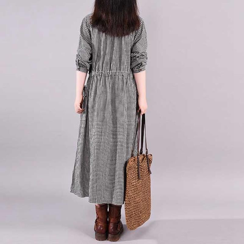Jednorzędowa Sukienka W Kratę Z Długim Rękawem