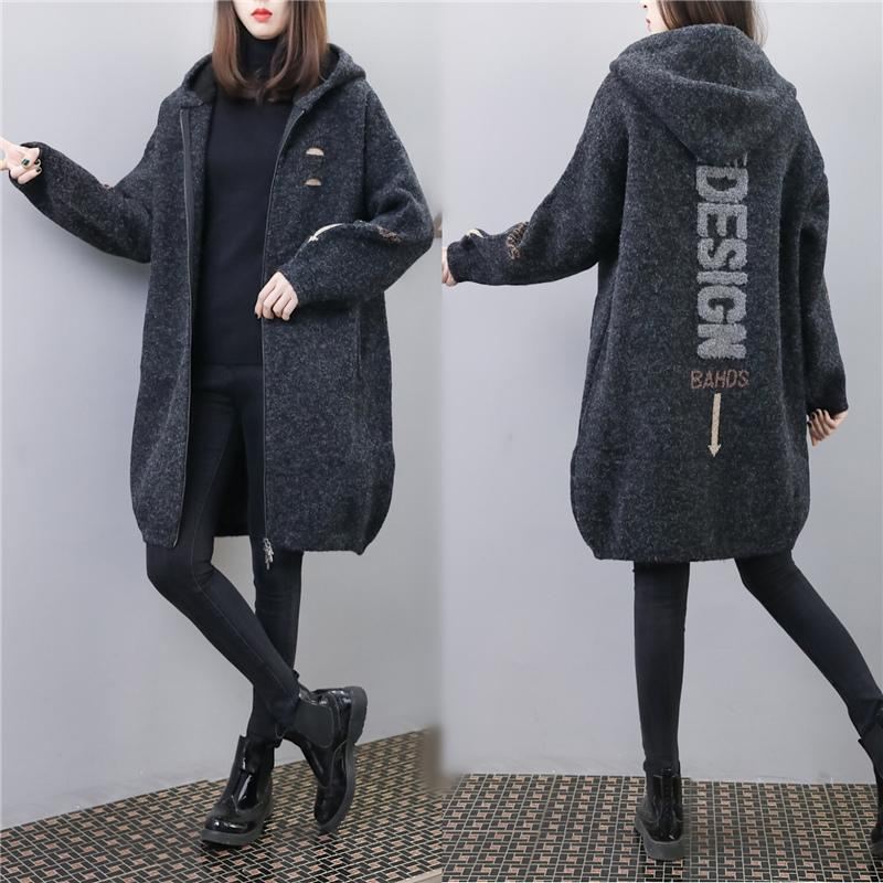 Jesień Zima Nowy Płaszcz Z Dzianiny O Średniej Długości