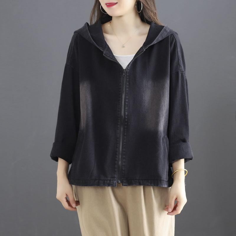 Jesienna Luźna Bluza Z Kapturem Bawełniany Krótki Płaszcz