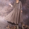 Jesienna Luźna Sukienka Z Dekoltem W Serek I Falbanką