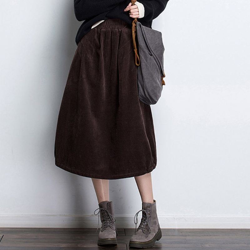 Jesienno-zimowa Casualowa Spódnica Sztruksowa Ze Słowem