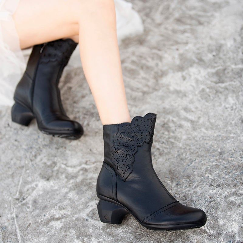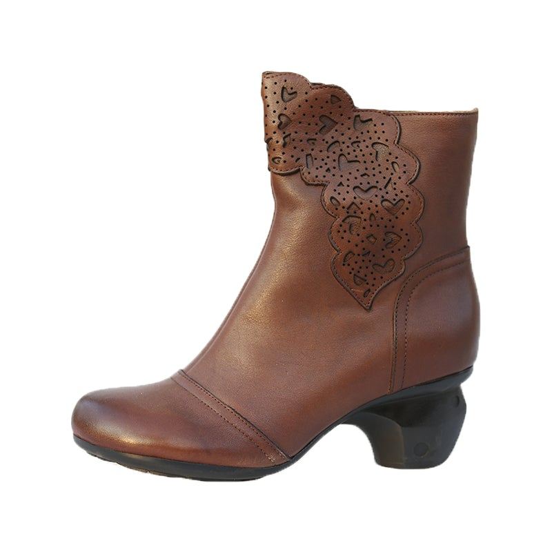Jesienno-zimowa Damska Retro Solidne Skórzane Buty Na Zamek Błyskawiczny