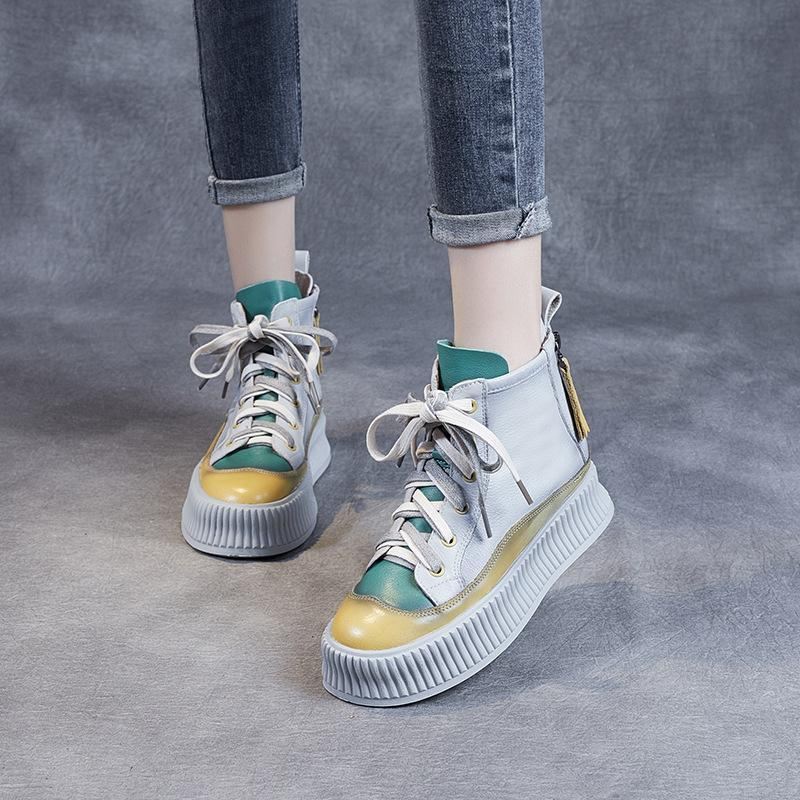 Jesienno-zimowa Skórzana Retro Dopasowanie Kolorów Obuwie
