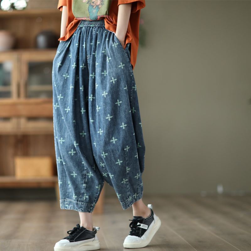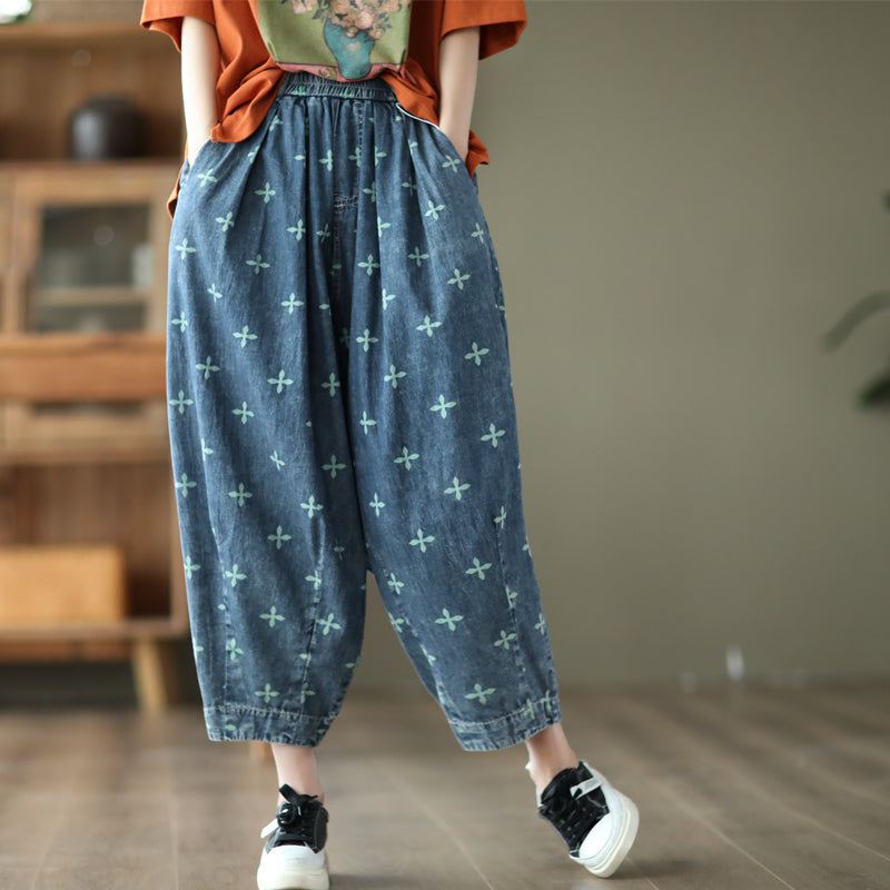 Kobiety Lato Retro Casual Luźne Cienkie Dżinsy Bawełniane