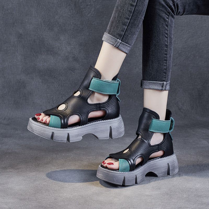 Kobiety Letnie Platformy Hollow Skórzane Sandały Na Co Dzień