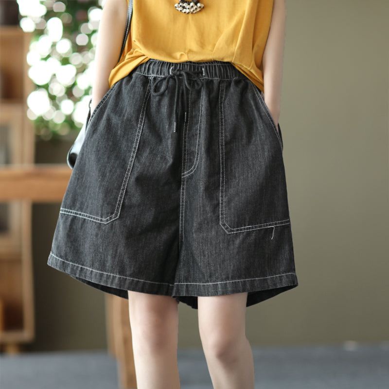 Kobiety Retro Luźne Letnie Bawełniane Spodenki Jeansowe