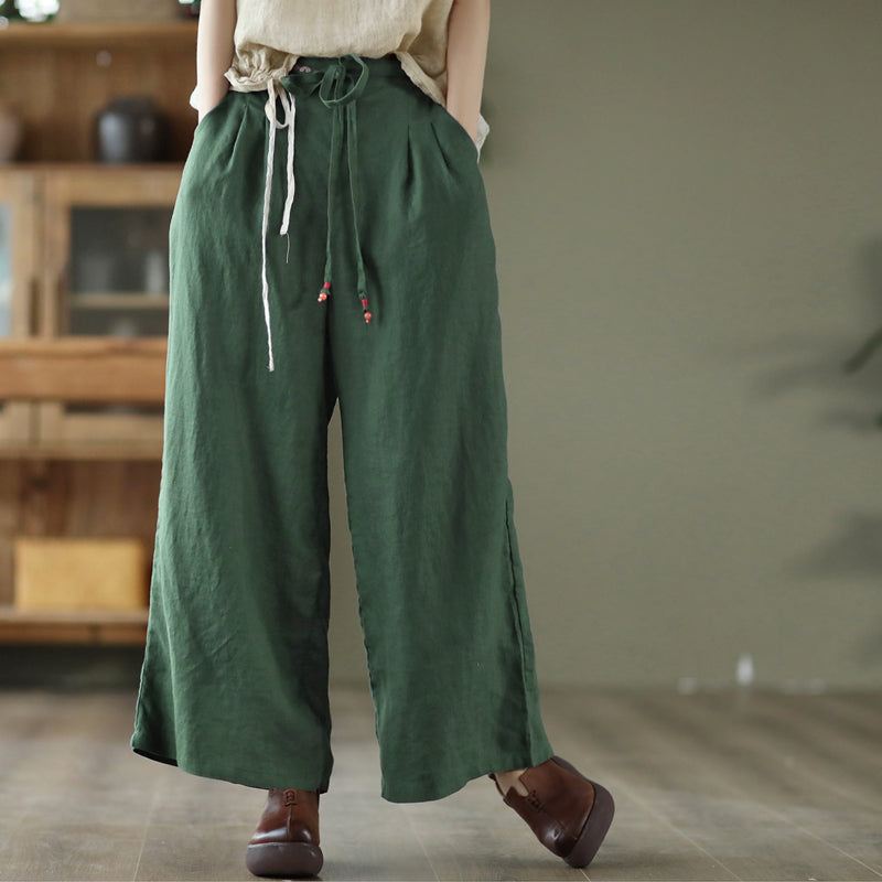Kobiety Vintage Wiosna Lato Lniane Luźne Spodnie Szerokie Nogawki