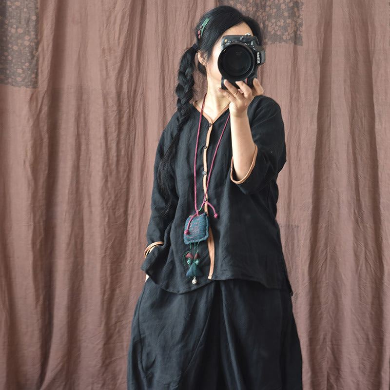Kobiety Wiosna Lato Bawełniana Pościel Bluzka Retro