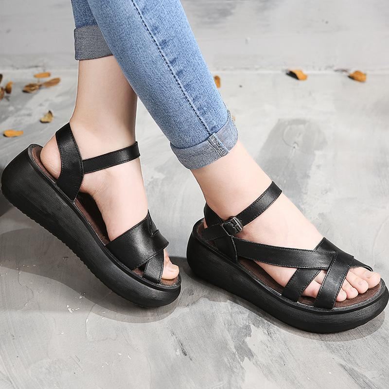 Kobiety Wiosna Lato Retro Platforma Sandały Skóry Wołowej