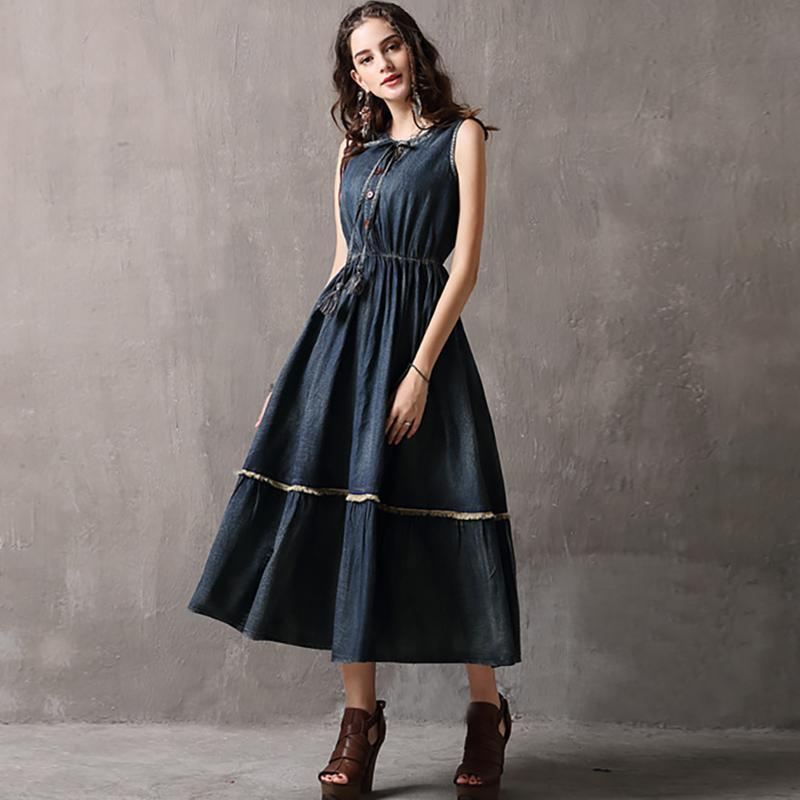 Letnia Sukienka Dżinsowa Bez Rękawów W Stylu Vintage