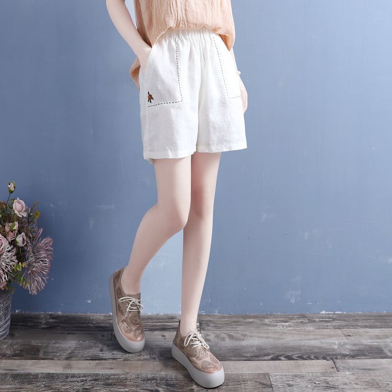Letnie Lniane Haftowane Luźne Spodenki W Stylu Retro