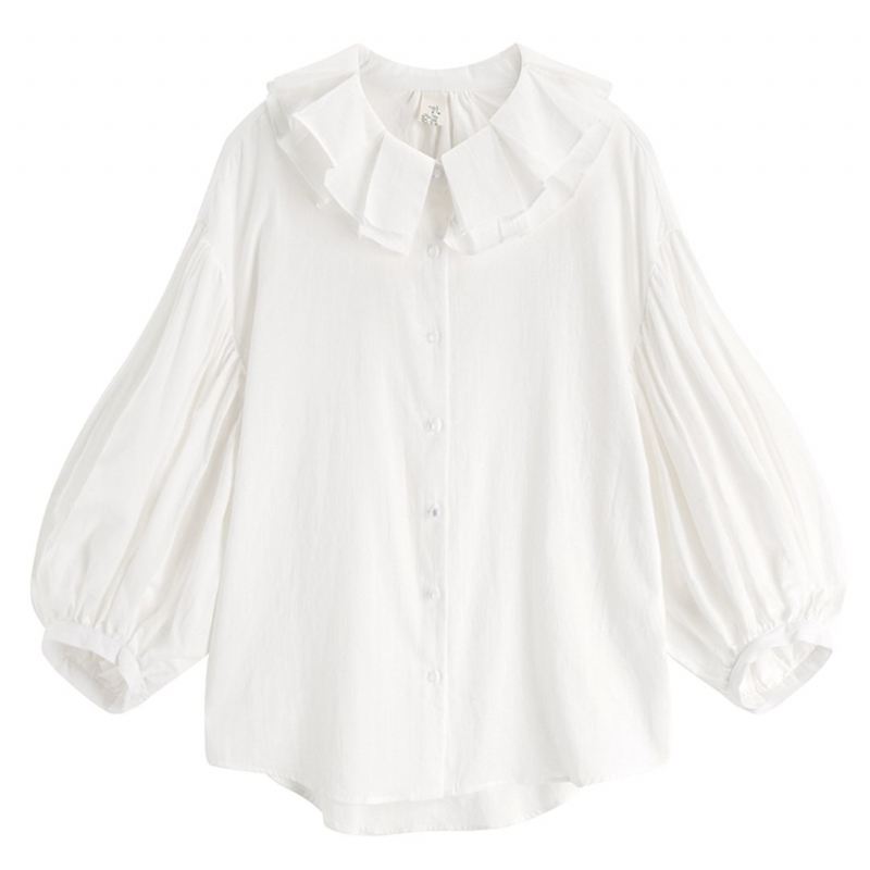 Luźna Biała Koszula Z Rękawami Z Falbaną Dla Kobiet