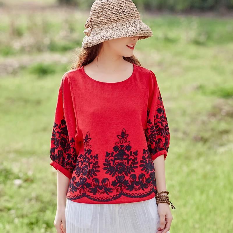 Luźna Luźna Bluzka Z Latarniowym Rękawem