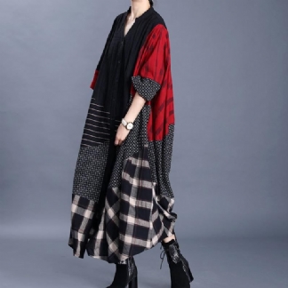 Luźny Kardigan Z Nadrukiem Lniany Płaszcz Damski