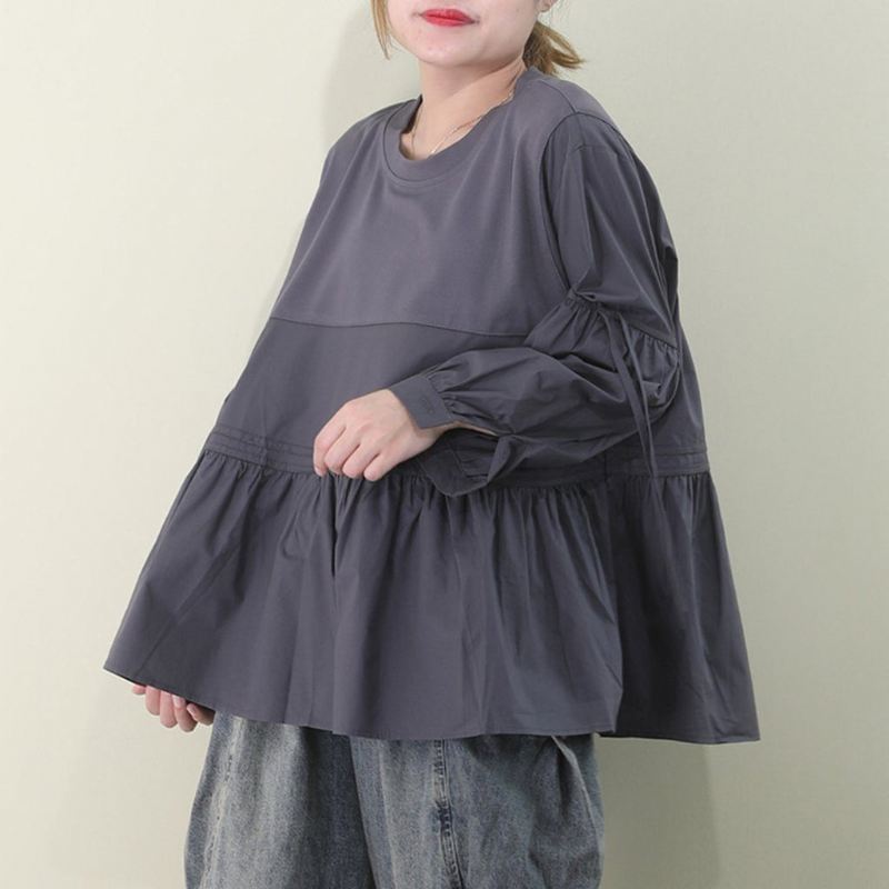 Luźny T-shirt Z Marszczonymi Rękawami Z Panelami