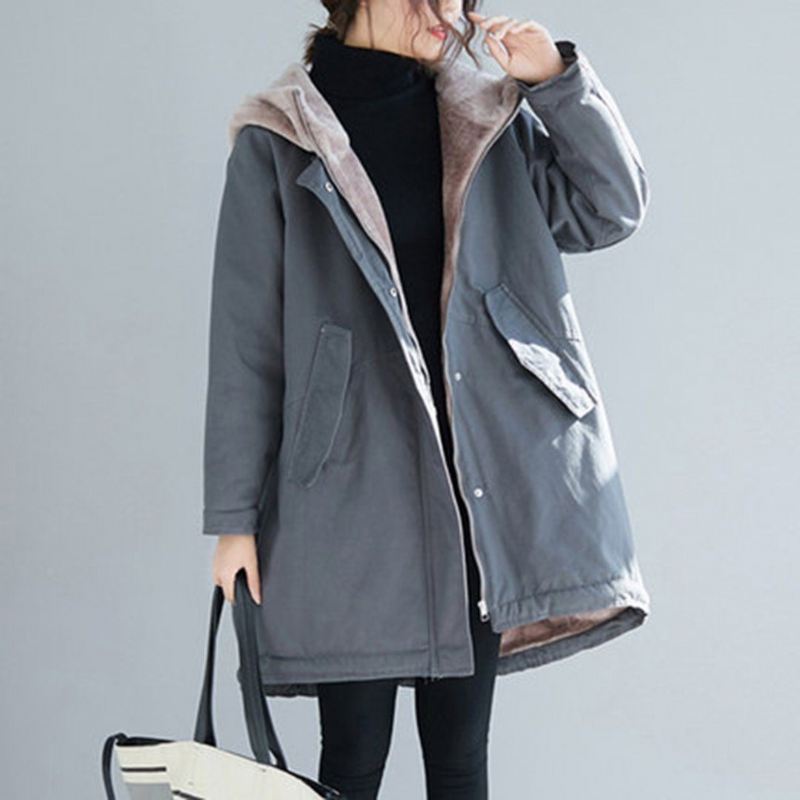 Luźny Zimowy Gruby Futrzany Płaszcz Z Kapturem