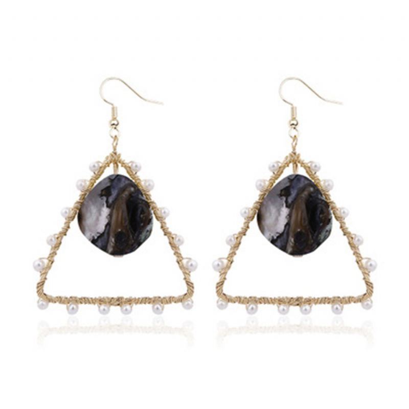 Naturalne Perłowe Kolczyki W Kształcie Trójkąta Ręcznie Tkane Kolczyki Z Drutu Miedzianego Biżuteria