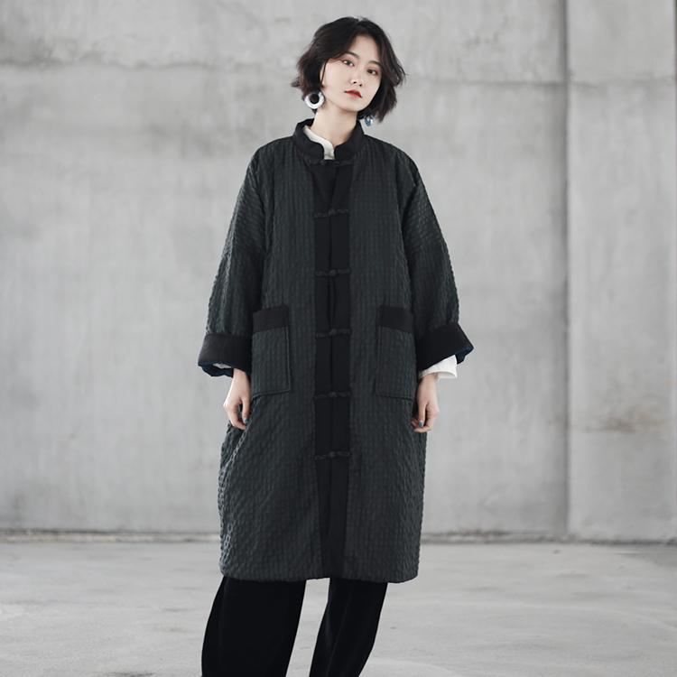 Retro Bawełna Len Plaid Długi Płaszcz Zimowy