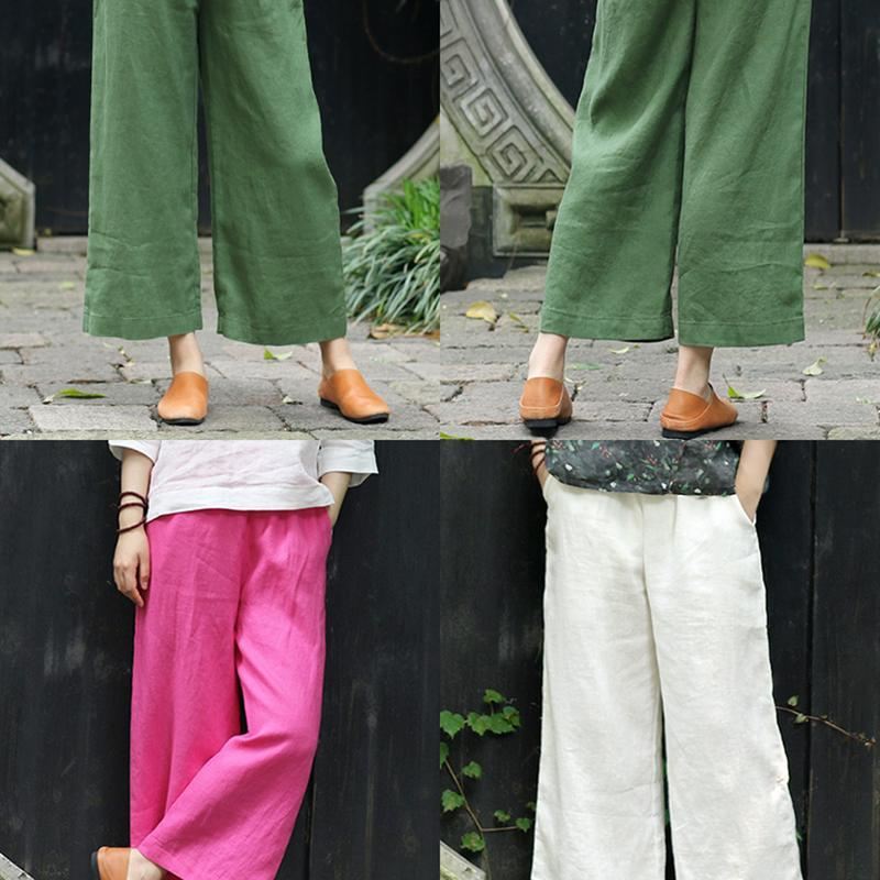 Retro Lniane Luźne Spodnie Damskie Bawełniane Lniane Casual