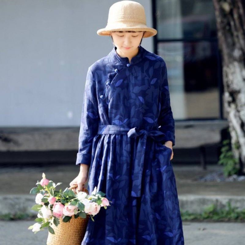 Żakardowa Sukienka Lniana Z Kołnierzykiem