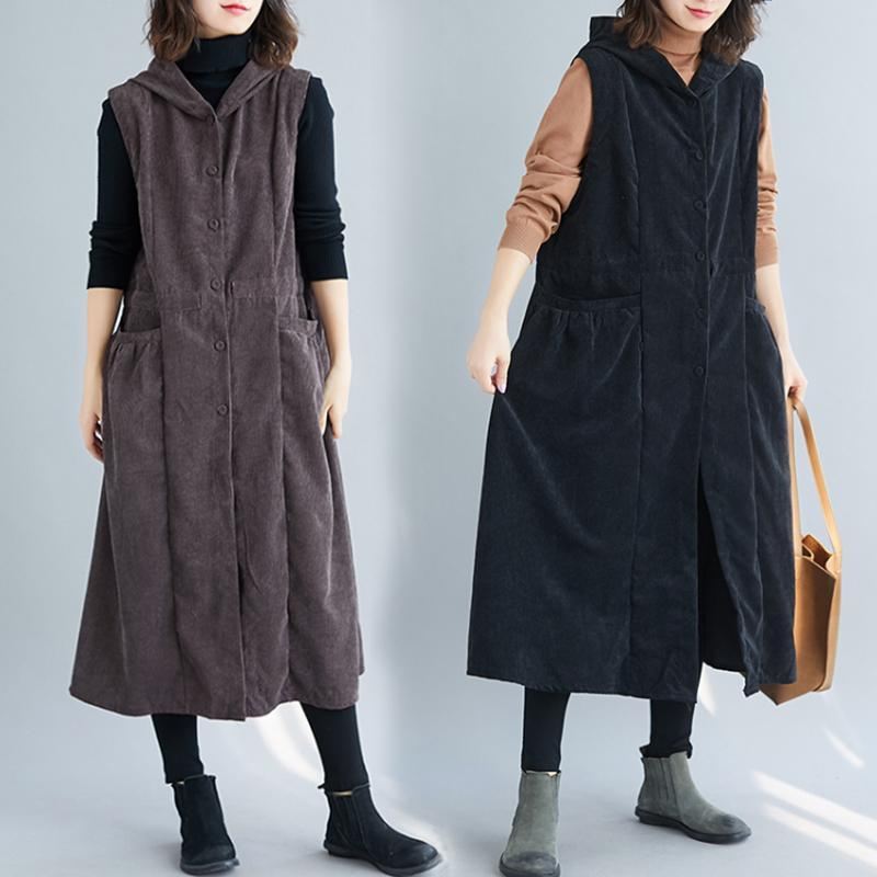 Sztruksowa Jesienno-zimowa Luźna Kamizelka Sztruksowa Z Kapturem