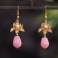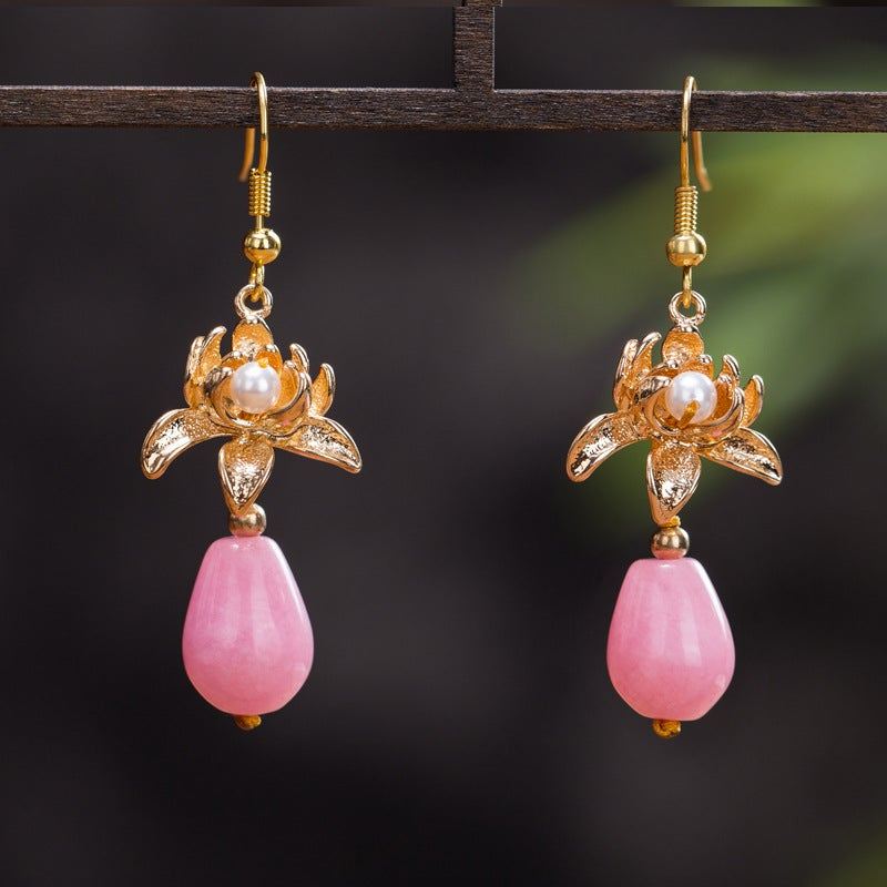Vintage Kwiatowy Awenturynowe Kolczyki Z Koralików Jadeitowych
