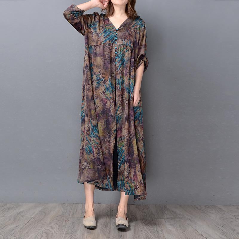Vintage Print 100% Jedwabny Kardigan Z Dekoltem W Szpic