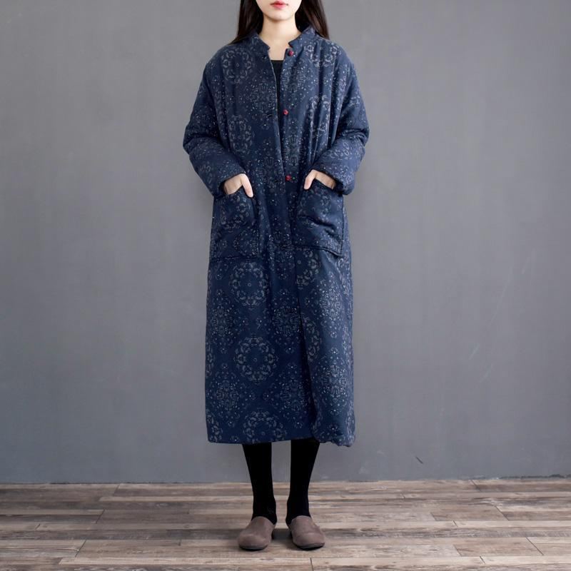 Vintage Print Stand Collar Gruby Bawełniany Płaszcz