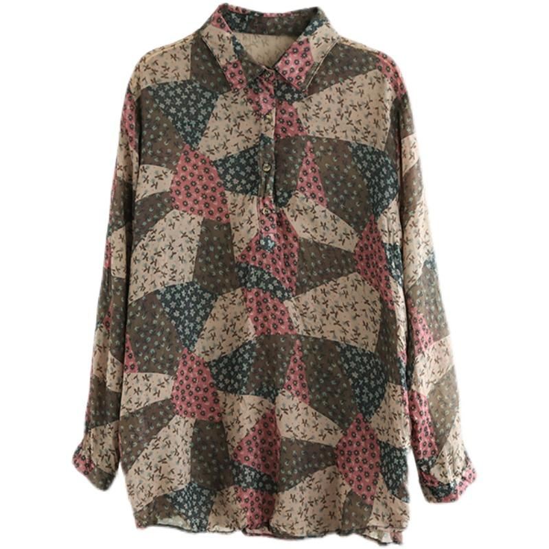 Wiosenna Lniana Bluzka Z Długim Rękawem W Kwiaty