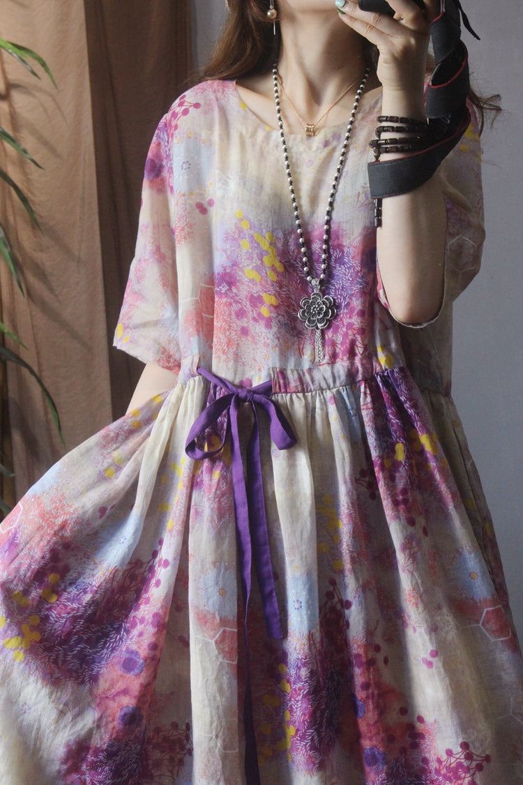 Wiosenna Sukienka Lniana W Stylu Retro W Kwiaty Z Bawełny I Bawełny