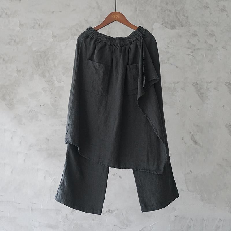Wiosenne Fałszywe Dwuczęściowe Lniane Spodnie Ze Spódnicą