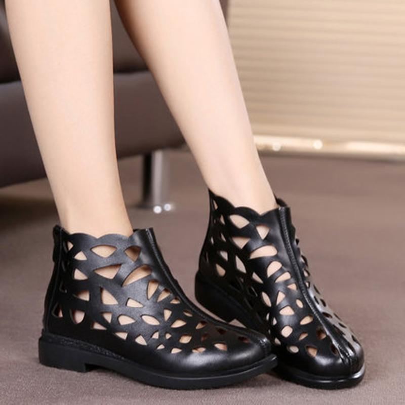 Wiosenne I Letnie Skórzane Hollow Kobiety Sandały Buty