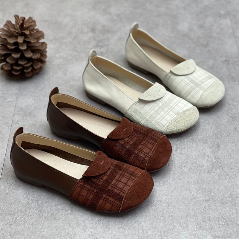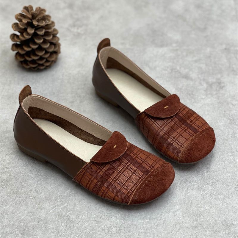 Wiosenne Letnie Skórzane Buty W Kratę W Stylu Vintage