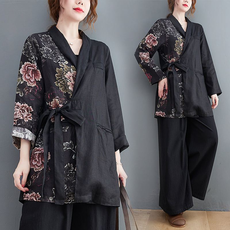 Wiosenny Damski Retro Kwiatowy Luźny Płaszcz Bawełniany