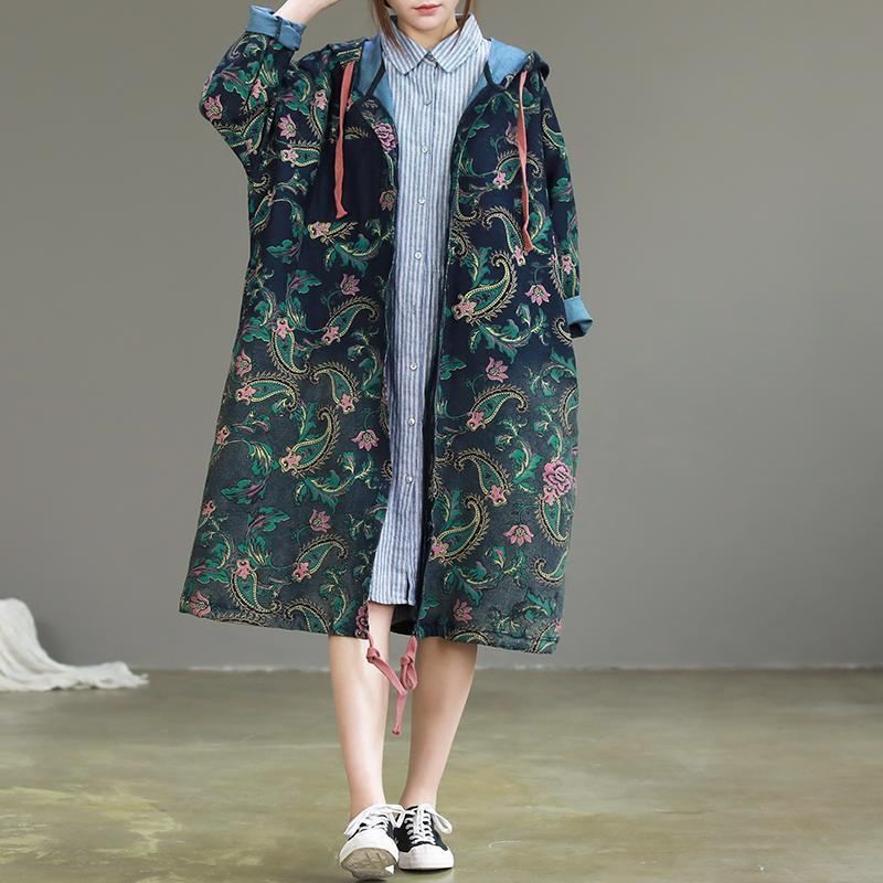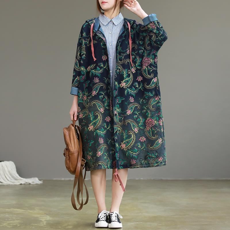 Wiosenny Nadruk Długa Kurtka Damska Z Kapturem W Stylu Retro