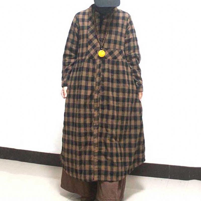 Zimowy Luźny Płaszcz Bawełniany W Kratę